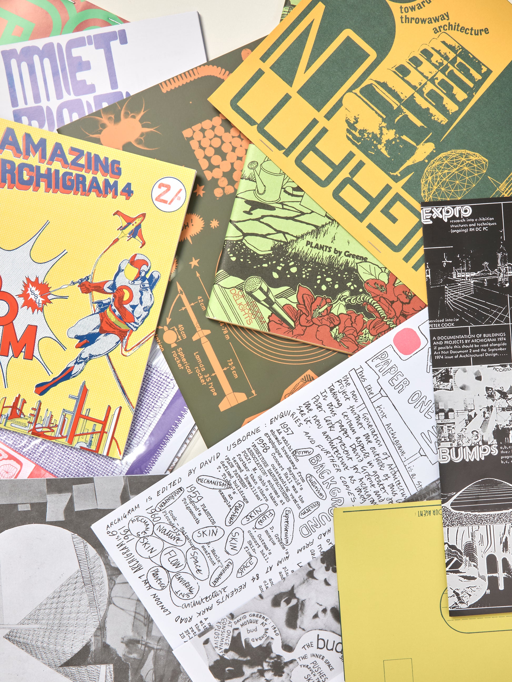 Inspired by comic-book culture, Pop art, psychedelia, the space race, sci-fi, Constructivism and Buckminster Fuller, the hugely influential British collective Archigram was the epitome of 1960s avant-garde architecture. Their self-published, lo-fi but materially ingenious magazine Archigram, begun in 1961, announced their ideas for such visionary concepts as "Walking City," "Plug-In City" and "Instant City." It also served to connect the international avant-garde of the 1960s. Archigram forged links with the Metabolists in Japan, Frei Otto, Utopie and Haus-Rucker-Co in Europe, and Buckminster Fuller in the US. They were also championed by critics such as Charles Jencks and Reyner Banham, who brought Archigram's famous fourth pop-up issue to the US in 1966. Today Archigram is one of the rarest major small-press publications of the 1960s, with individual issues selling for a minimum of $600.