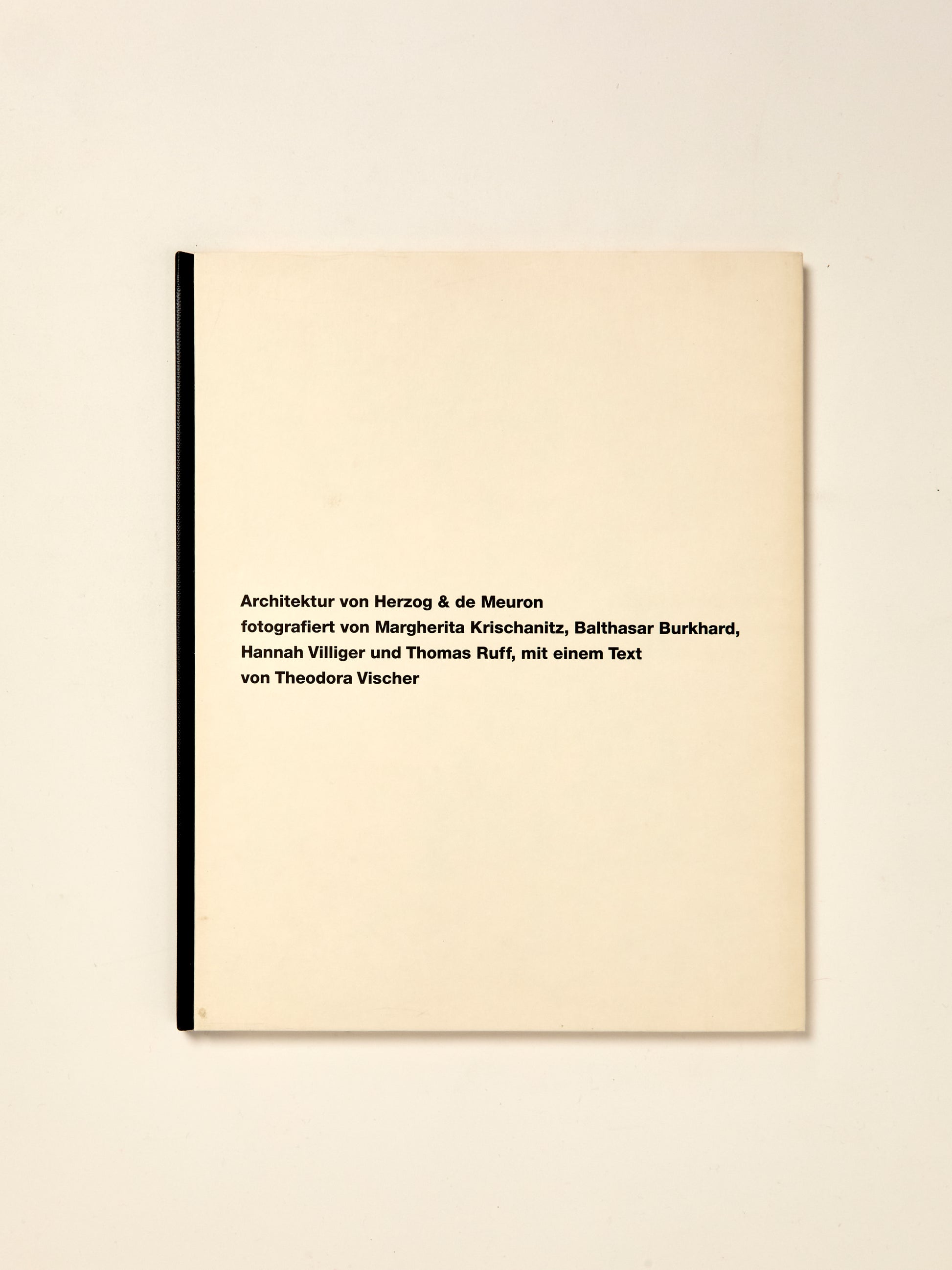 M. Krischanitz, B. Burkhard, H. Villiger, and T. Ruff explore the importance of surface in the architects' work through photographic imagery. The catalogue was produced for the exhibition designed by Herzog + de Meuron for the Swiss Pavilion at the Venice Biennale, 1991.