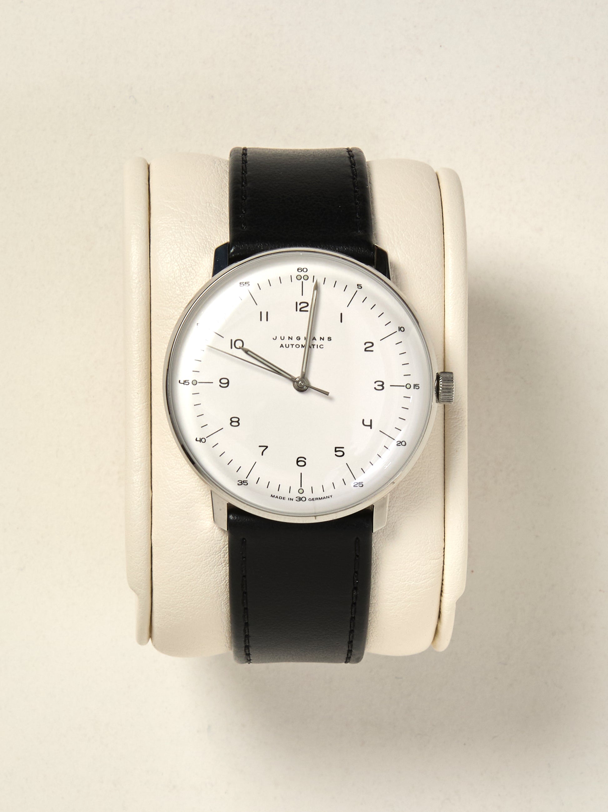 The mechanical wristwatch series that Junghans designed in collaboration with Swiss architect and design legend Max Bill in 1961 is still being produced practically unchanged to this day - from the puristic dial with distinctly rounded numerals conceived especially for this product, to the domes crystal and flat appearance of the case.