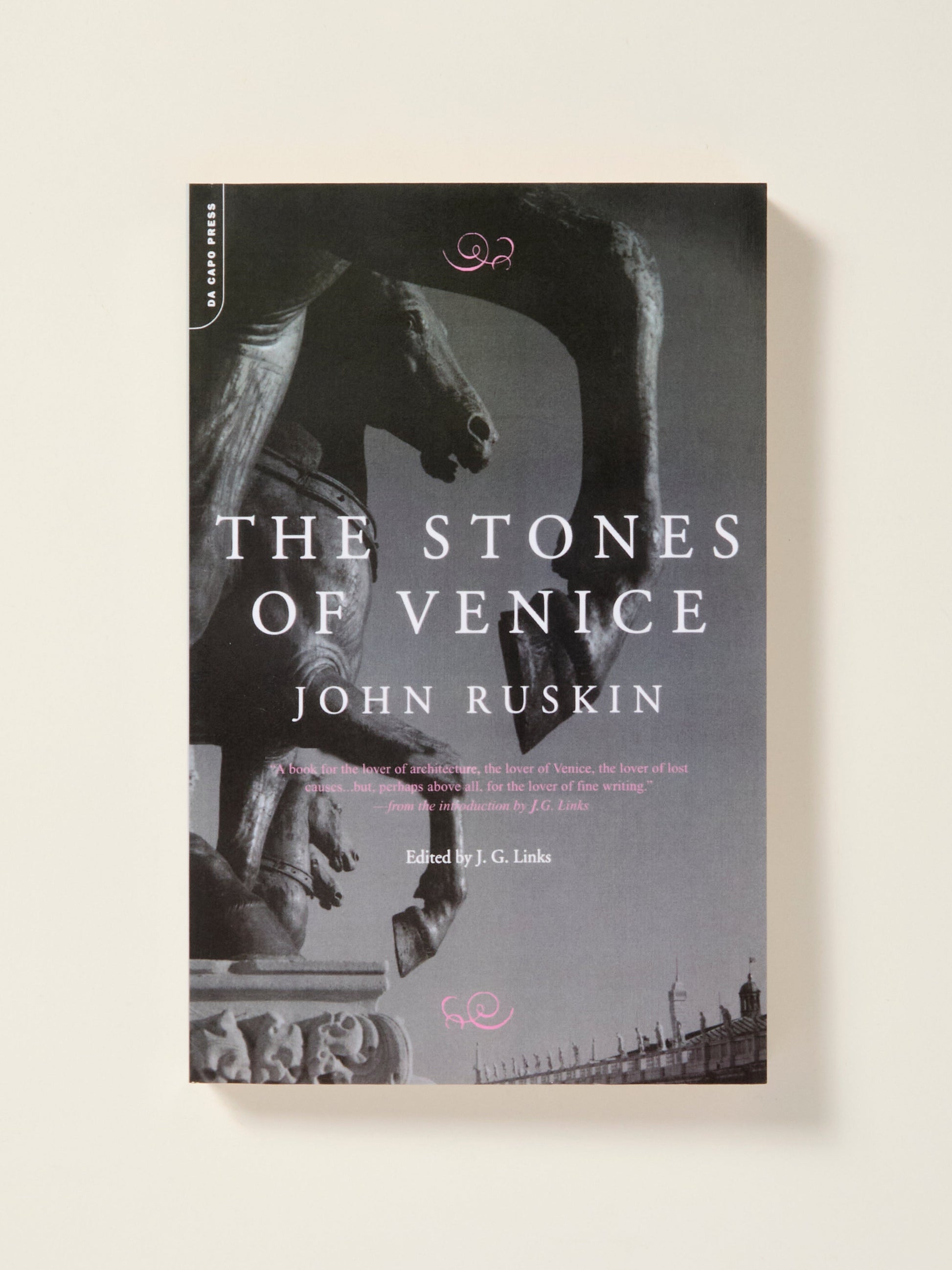 “It is in Venice, and in Venice only, that effectual blows can be struck at this pestilent art of the Renaissance. Destroy its claims to admiration there, and it can assert them nowhere else.” This was Ruskin’s war cry as he entered the now almost forgotten Battle of the Styles on the side against “the school which has conducted men’s inventive and constructional faculties from the Grand Canal to Gower Street.”But first the reader must know the difference between right and wrong; he must find out for himself the best way of doing everything. “I shall give him stones, and bricks and straw, chisels and trowels and the ground, and then ask him to build, only helping him if I find him puzzled.”Unhappily, both these exciting objectives were attained only after the expenditure of nearly half-a-million words; glorious words, but too many. For fifty years, The Stones of Venice was read by all who went there and thousands who could not; the sightseers whom the city captivates today seldom have its greatest guidebook with them.It is the aim of this new edition to put a fascinating book within reach of travelers–active or armchair–with limited resources of time. Much that was superfluous has been omitted; what remains is the essence of a now very readable and portable book. It is a book for the lover of architecture, the lover of Venice, the lover of lost causes, and, perhaps above all, for the lover of fine writing.
